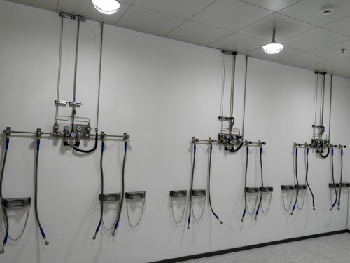 1.氣瓶間內壓自動調節后蓋板與科學實驗地下室的氣路手持終端相互之間應用SS316LBA管實施接,水管內表面能晶亮度為Ra<0.4umBA級水管。